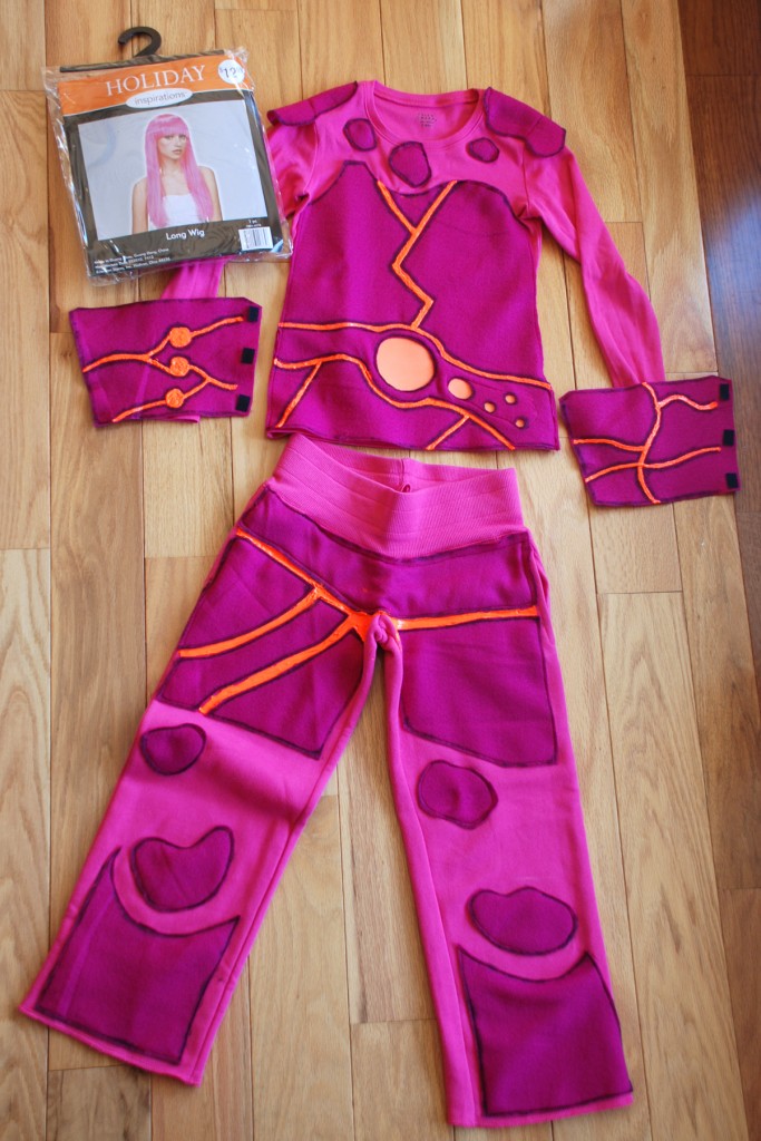 The crowning touch to the entire costume was the pink wig I found at JoAnn’s. My daughter is in love with the entire costume. I am sure it will be comfortable and warm for her to wear for her Halloween party at school and on Halloween night!