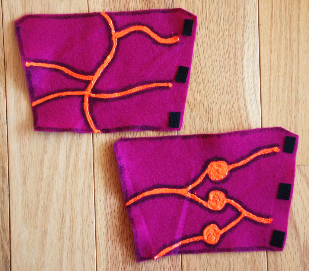 The next morning I added the burned edges. I then cut sticky velcro strips and added them to the wrist guards.