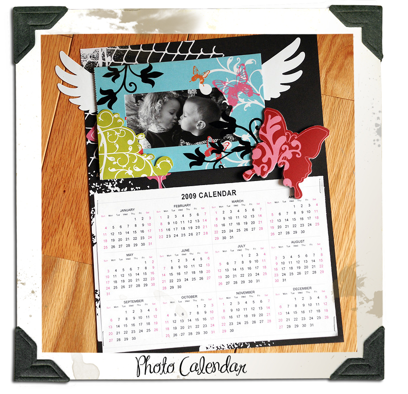 I made this calendar project for Colorbök back in 2009. I think it makes a perfect gift. It is a great size for hanging in an office or on the refrigerator. I slipped my picture behind a photo frame so that I could easily switch it out every month or two.