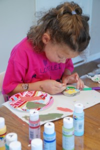 - If you use watercolors let them paint out of the tray the watercolors come in. After the rocks are painted, you can wash the rocks off and paint them again. This works well with really little kids!