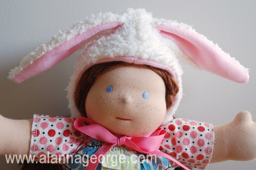 Remember earlier in the week when I teased you with the hint of a free pattern? Here it is. A free pattern download to create a matching fleece animal hat for your daughter’s American Girl Doll or 18″ doll. This hat will also fit a 15″ Bamboletta or various styles of Waldorf dolls too.