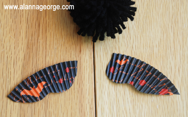 9. Use hot glue to attach ears to back of head/bottom of cone.