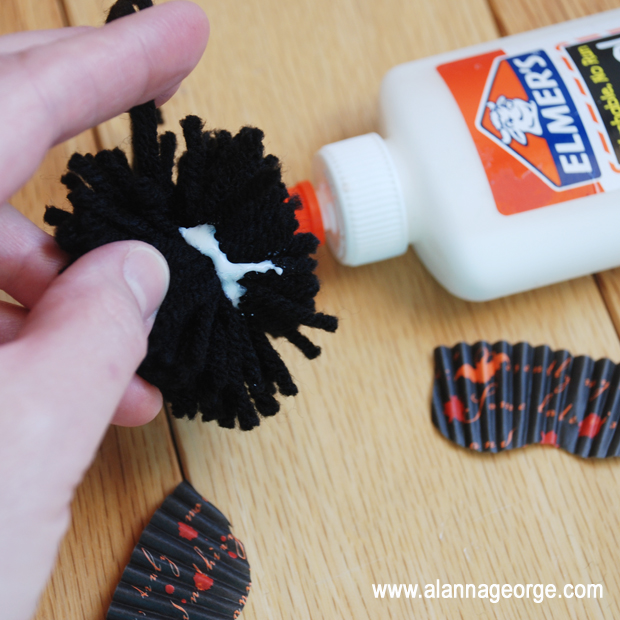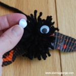 8. Use a wire cutter and cut two black pipe cleaners in half to make four leg pieces.