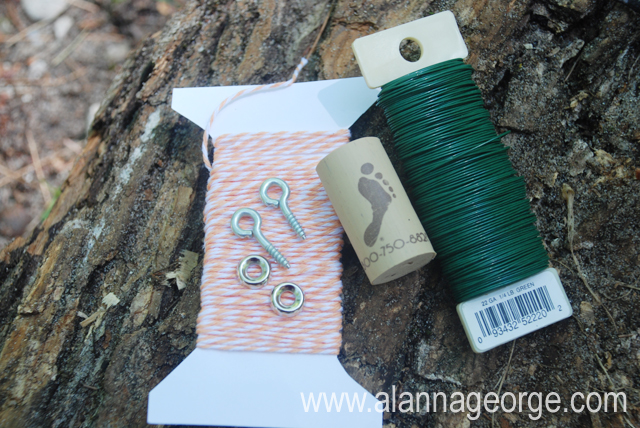 3. Create a hanger by tying baker’s twine through the top screw eye.