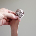 2. Wrap the fabric strip around the knot in a spiral shape. To create more depth to the fabric you can twist the fabric at the same time. (Pic. 2 and 3)