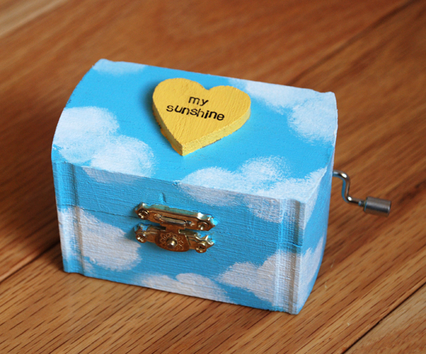 How To | My Sunshine Music Box http://www.alannageorge.com/2012/01/18/how-to-my-sunshine-music-box/ http://www.alannageorge.com/2012/01/18/how-to-my-sunshine-music-box/#comments Wed, 18 Jan 2012 20:16:21 +0000 http://www.alannageorge.com/?p=2065 Here is something you can make your little sweetheart for Valentine’s Day, a hand-crank music box placed inside a cute hand-painted wooden box. When my daughter (now 6) was a baby I always sang her “You Are My Sunshine” while I rocked her to sleep. My daughter and I still love to sing this song […]