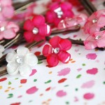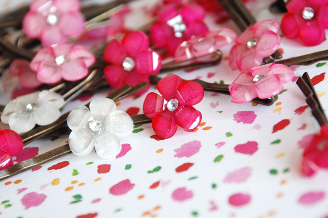 I previously posted these instructions in with my Valentine Printable, so this is a little redundant. I thought these pretty pictures might inspire some of you to make just the bobby pins even if you don’t need to create Valentine cards.