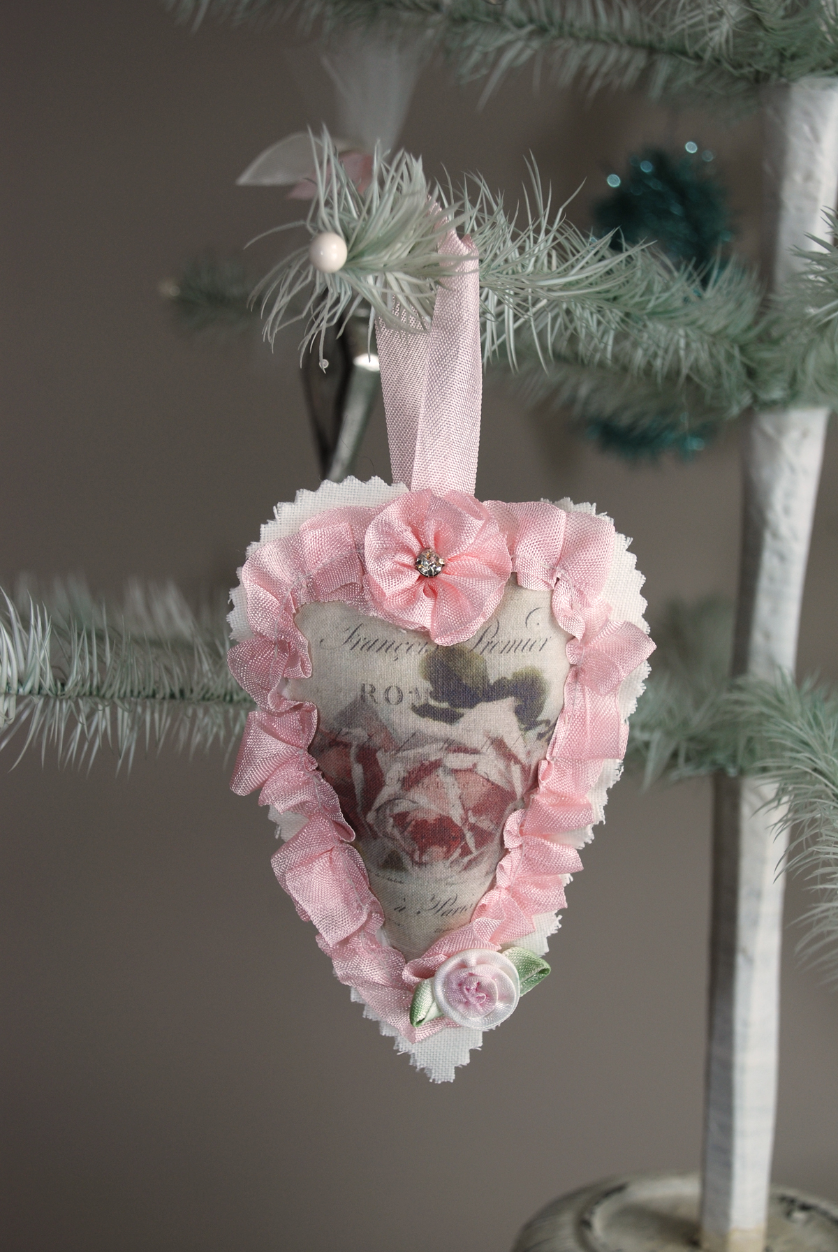 I want to share the ornaments from the Vintage Valentine Ornament Swap I hosted. All the ornaments are true romantic beauties. My tree looks perfectly decorated for this lovely holiday!
