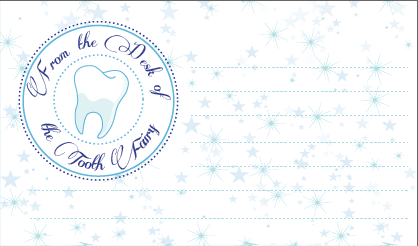 Have you ever received a magical note from a fairy? I was lucky enough to get permission from the Tooth Fairy to share her authentic letterhead with all of you. I can tell you she is very sweet in person (and tiny too). She has a whispy, squeak of a voice. She is so beautiful that she literally sparkles (just like clean teeth). Next time I have to remember to get her to hold still long enough to get her picture.