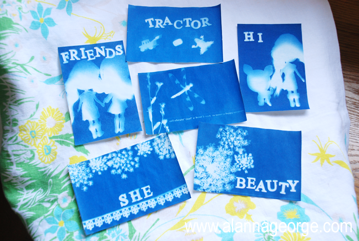 8. When the Sun Paper is completely dry it will like very dark indigo blue. Now you can frame your art or glue the art to the front of blank cards.